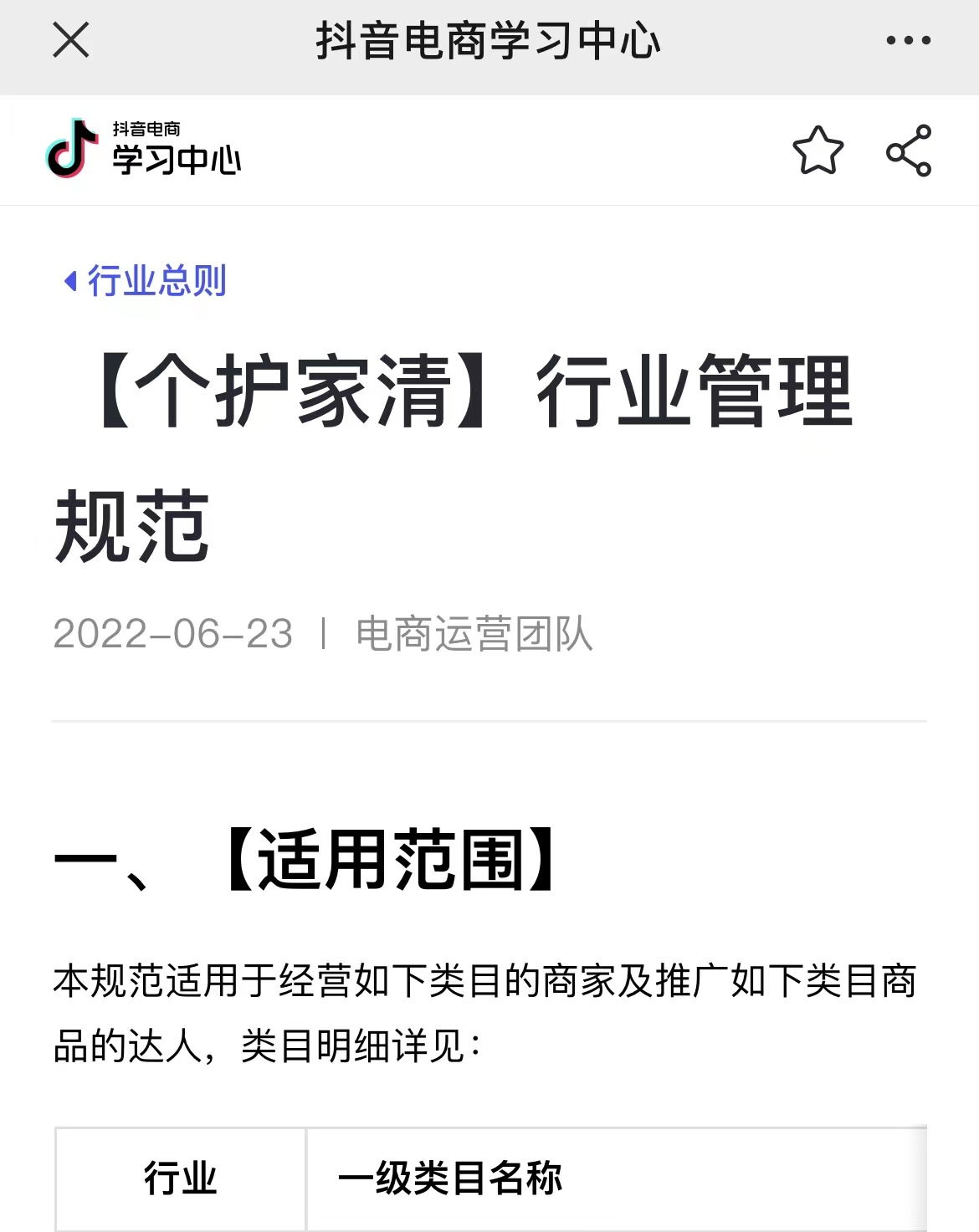 6月24日消息,抖音电商日前发布《【个护家清】行业管理规范》新增公告(以下简称公告)。