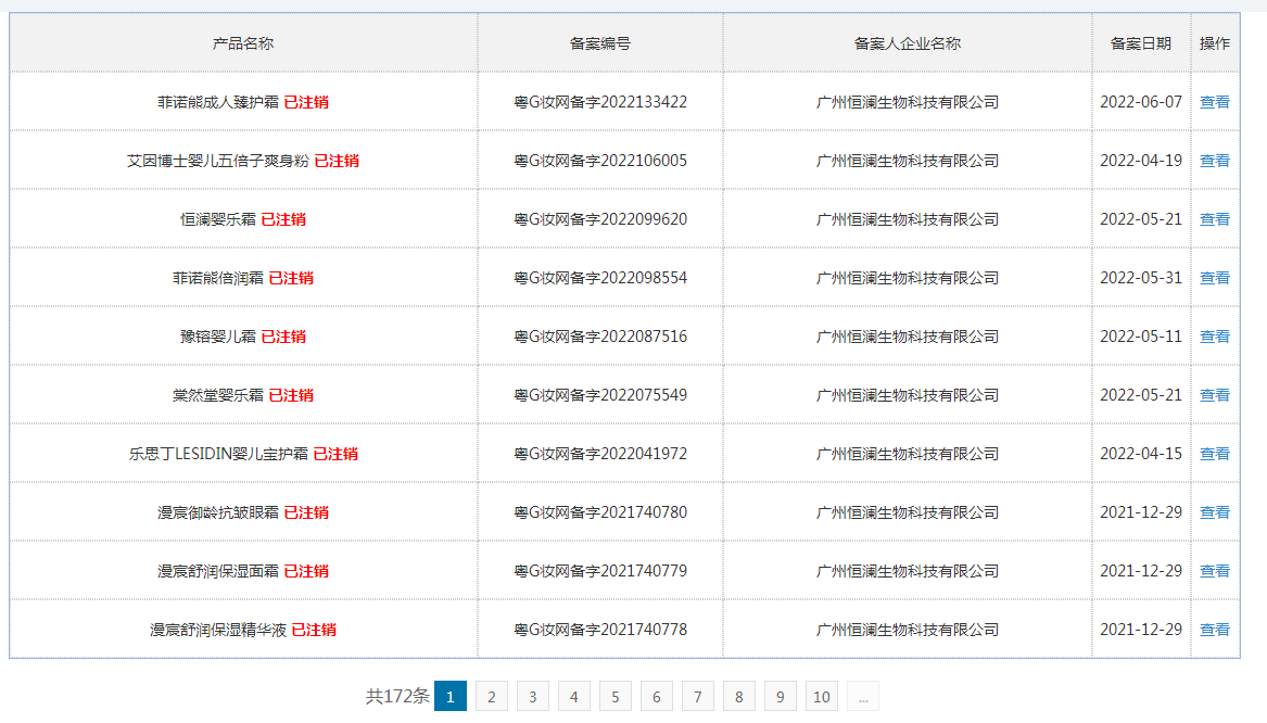 据公开信息,广州恒澜于2017年成立,公司以生产儿童化妆品和部分成人护肤品为主,截止到今年6月,该公司尚有新产品备案,不过如今都已注销。