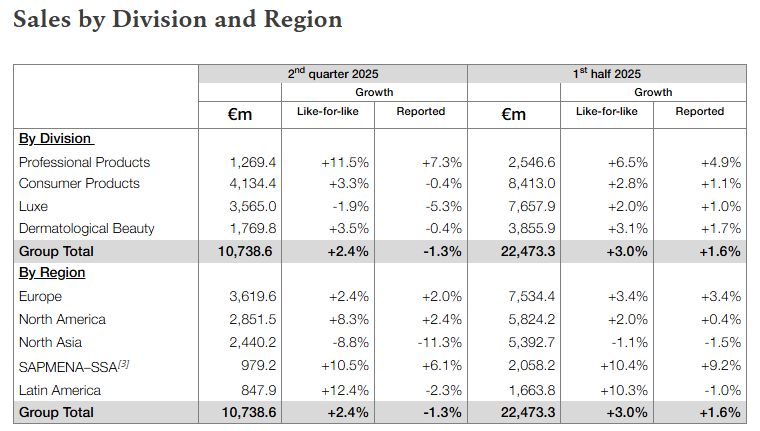 北京时间7月30日凌晨,欧莱雅集团发布2025年上半年财报。