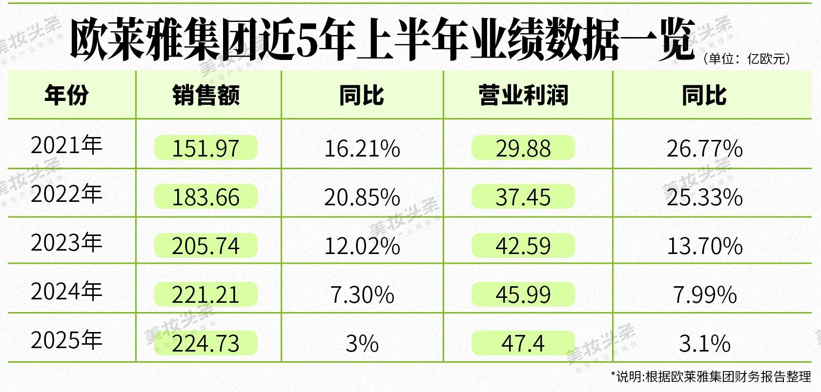 财报显示,2025年上半年,欧莱雅集团销售额、营业利润“双增”,但增速显著放缓。