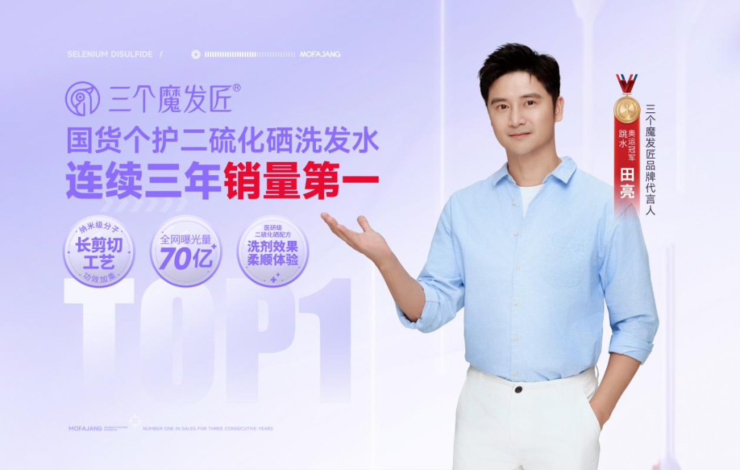 在品牌形象塑造上,三个魔发匠通过签约跳水奥运冠军陈若琳、中国国家击剑队等作为代言资源,增强品牌权威感。此次大会上,三个魔发匠正式官宣跳水奥运冠军田亮成为2026年度品牌代言人,借助其健康积极的公众形象,进一步提升品牌价值。