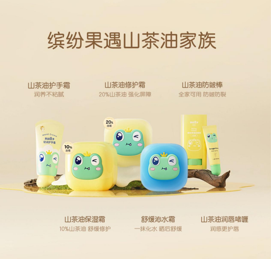27年国民品牌青蛙王子,针对南北方气候湿度、温度差异导致的儿童肌肤干燥、泛红等切实问题,创新打造出足量添加10%山茶油的油霜(日常保湿)与足量添加20%山茶油20%油霜(屏障修护)的黄金CP组合,精准匹配不同环境下儿童皮肤屏障的实际状态,提供恰到好处的油分补充与保护,从根本上强化皮肤自身防御力,而非进行不必要的干预。