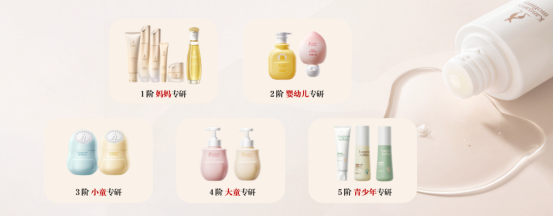 袋鼠妈妈定位为全成长期护理专家品牌,首创提出“全成长期5阶科学护理体系”,结合皮肤生理、内分泌、行为环境、社会心理等多维度,进行科学分阶,推出覆盖妈妈、婴幼儿、小童、大童、青少年的全成长周期的产品线。