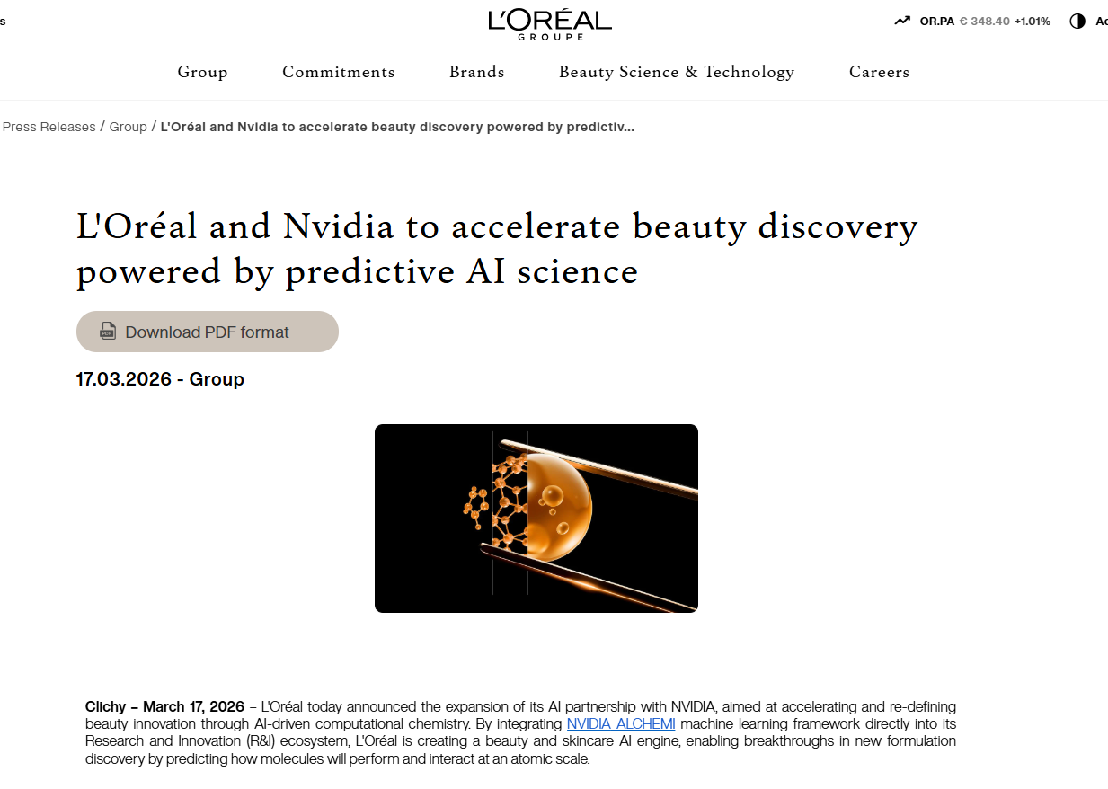 近日,欧莱雅官网挂出一条消息:与英伟达扩大合作。