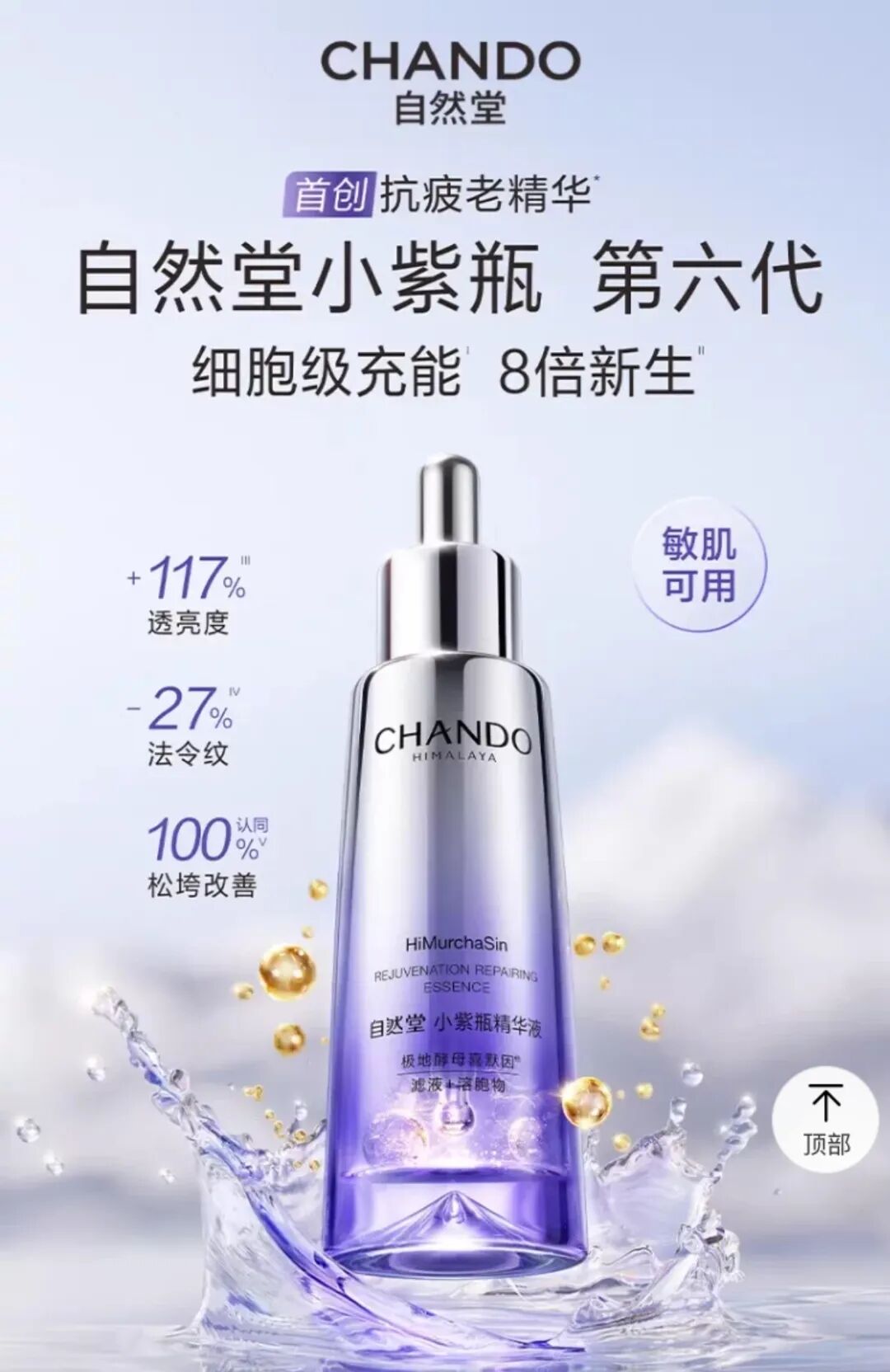 同时,自然堂持续打造超级爆品,以爆品带流量、以流量带全品类、以全品类提复购。经典的小紫瓶抗疲老家族成为市场现象级爆品,引领消费热潮,成为品牌增长的核心引擎。