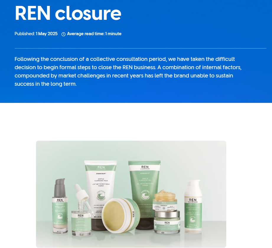 2025年,联合利华就曾在官网发布公告,拟关闭旗下高端纯净美妆品牌REN。值得注意的是,REN是联合利华高端美妆部门收购的第一个品牌;此外,联合利华还将旗下高端护肤品牌Kate Somerville(凯诗薇)出售给Rare Beauty Brands。接连剥离两大高端品牌,难免让人质疑其在高端品牌孵化、运营与整合方面的短板,其高端化之路仍充满挑战。