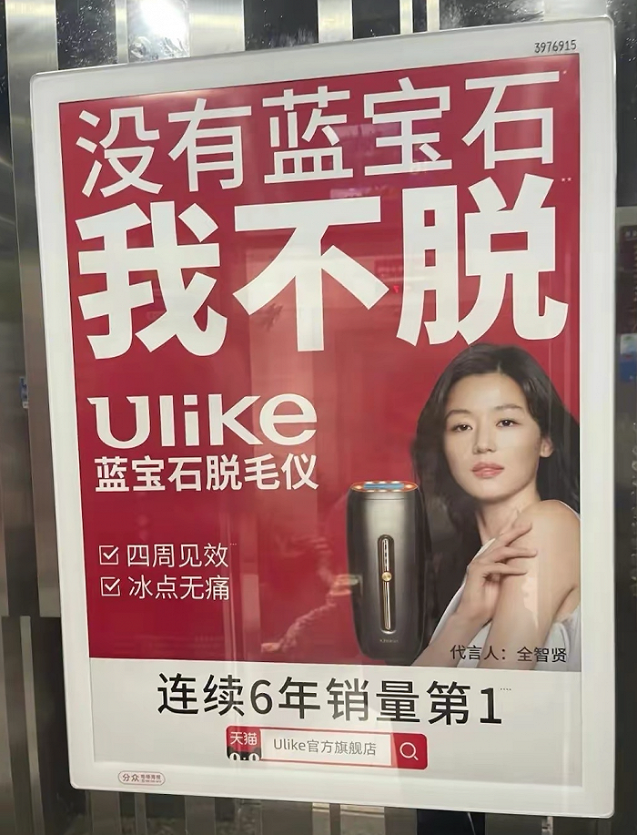 近日,关于Ulike脱毛仪广告违法一事引起行业的关注。据报道,在深圳多个住宅小区、商业楼宇电梯和大堂投放的“没有蓝宝石,我不脱”的Ulike脱毛仪系列广告,因“低俗擦边球”遭深圳市监管部门立案查处,相关电梯广告被要求全部整改。