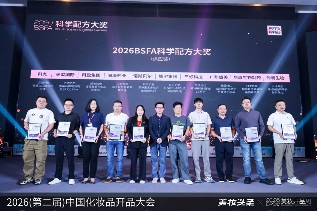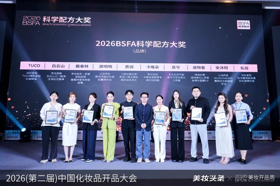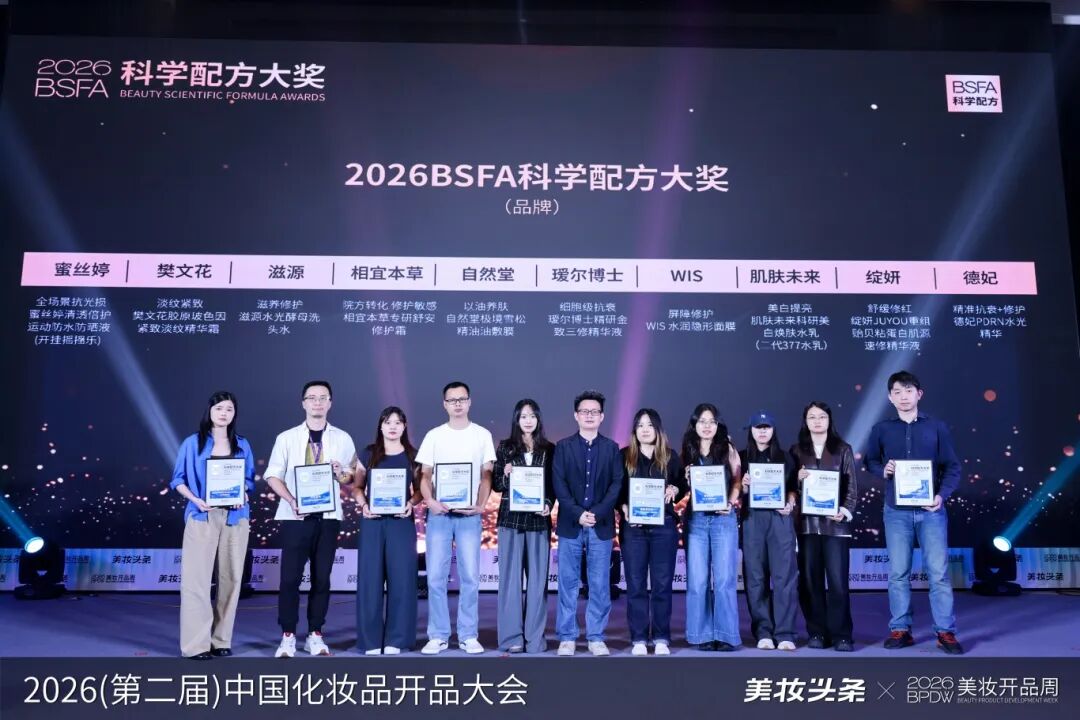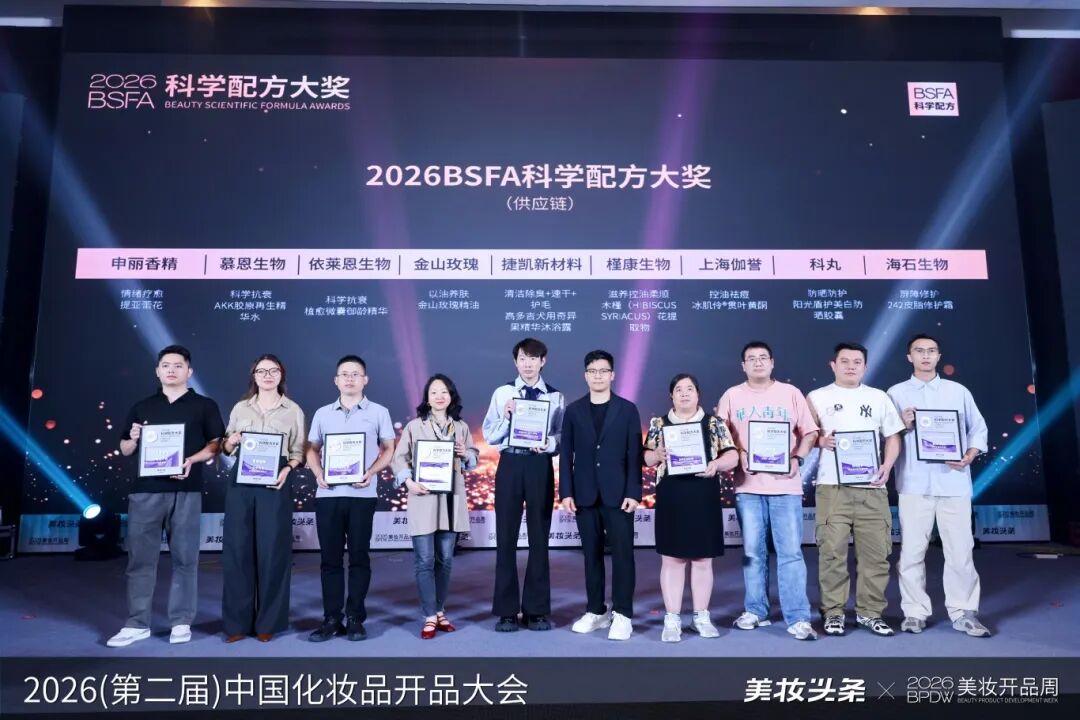 两天的行业盛会,吸引了1000+美妆产品人亲临现场,20+主题分享中涵盖3大行业独家首发内容,更有30+科学开品展与2026 BSFA科学配方大奖获奖产品展示区,晚宴现场同步举办的“2026 BSFA科学配方大奖”颁奖盛典,更让真正深耕研发的配方成果被行业看见、认可。