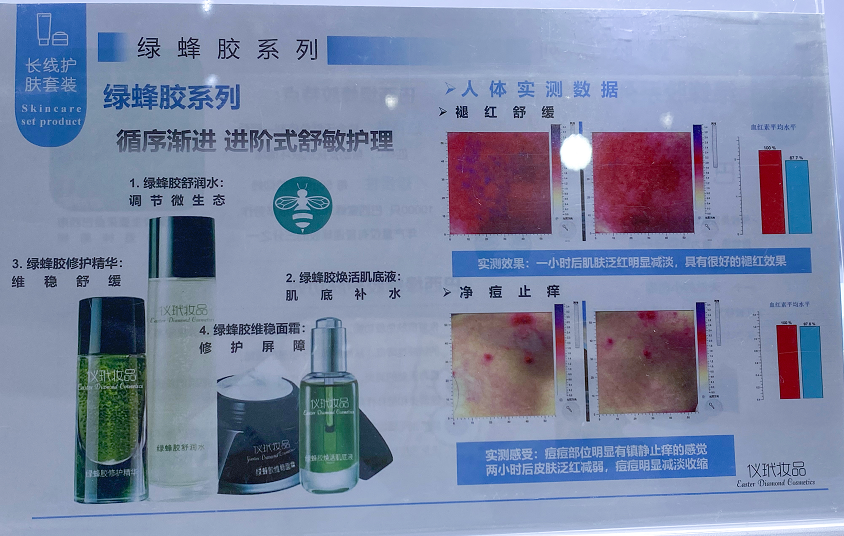 今年仪玳主推出了“敏感肌护罩”概念产品,该产品含有仪玳独家新原料:具有舒缓褪红、修复屏障功效的巴西进口绿蜂胶成分,能够从肌肤底层进行调理,以温和、递进的方式进行维稳抗敏。