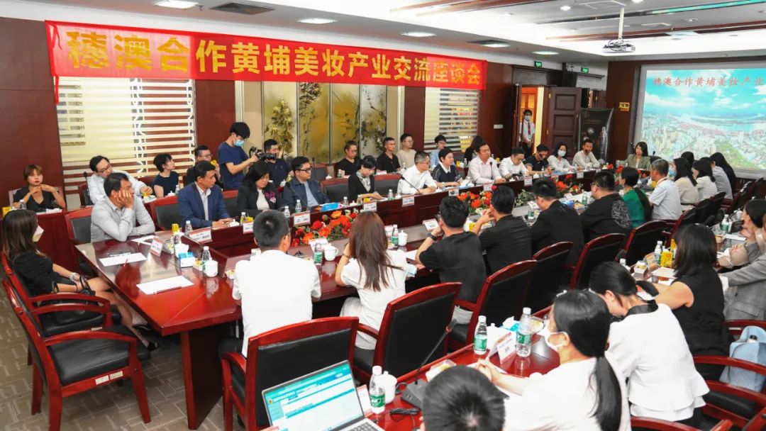 在随后的穗澳合作黄埔美妆产业促进交流座谈会上,澳门政企代表团、黄埔区市场监管局代表、美妆头条、以祥天生物为代表的美妆产业集优创新平台与天玺国际公司、旭妆公司等黄埔美妆优质企业代表们共话创新、共谋发展,围绕如何紧抓黄埔区、广州开发区谋划推进“湾区+”战略和粤港澳大湾区日趋国际化的营商环境利好,结合企业自身美妆产品、技术及品牌优势,促进黄埔美妆产业与澳门本地优势产业深度融合进行热烈讨论。