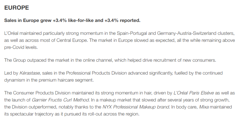 此外,尼古拉斯·耶罗尼穆斯(Nicolas Hieronimus)还透露到,预计即使在当前的经济和地缘政治紧张局势中,全球美容市场也将增长,并实现又一年的销售增长和盈利能力的提高。