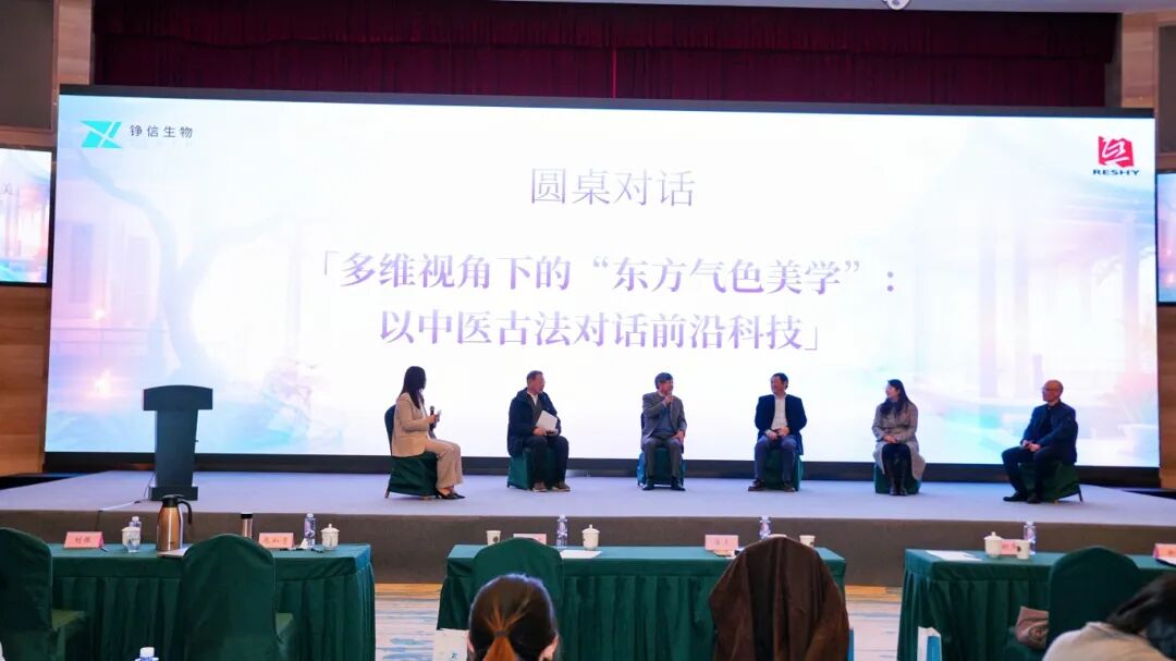 在圆桌论坛环节,上海中医药大学教授博士生导师张如青教授、原自然堂研发首席科学家陈明华博士、珀莱雅首席科学官黄虎博士、花西子产品总监新航女士、化妆品行业资深研发人员陈斌先生等嘉宾在铮信生物首席科学家辛英姬博士带领下,从多维度再度探讨了“东方气色美学”之道。