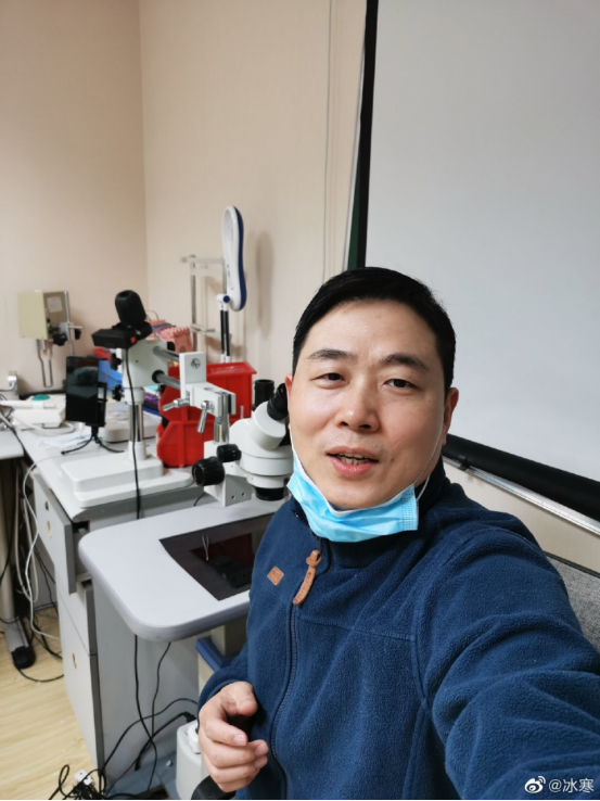 冰寒老师重返校园第七年在实验室度过除夕 | 图源:冰寒老师公众号,摄于2020年