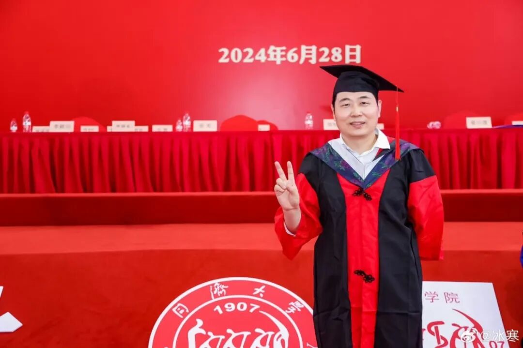 冰寒老师同济大学博士毕业照 | 图源:冰寒老师公众号,补拍于2024年6月28日