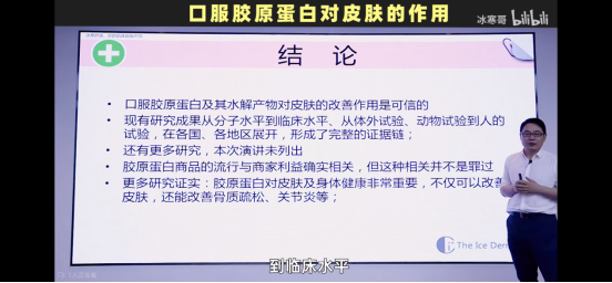 冰寒老师讲解口服胶原蛋白对皮肤的作用 | 图源:冰寒老师bilibili账号