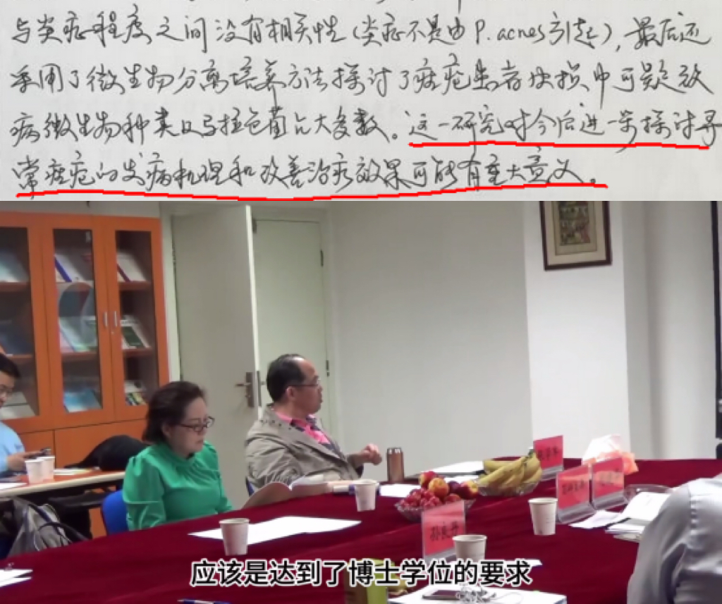 上图:南昌大学刘志刚教授评阅冰寒硕士论文的意见 | 来源:冰寒老师知乎账号 。下图:安徽医科大学前校长张学军教授听取冰寒老师硕士论文答辩后高度评价(现场视频截图)| 来源:冰寒老师