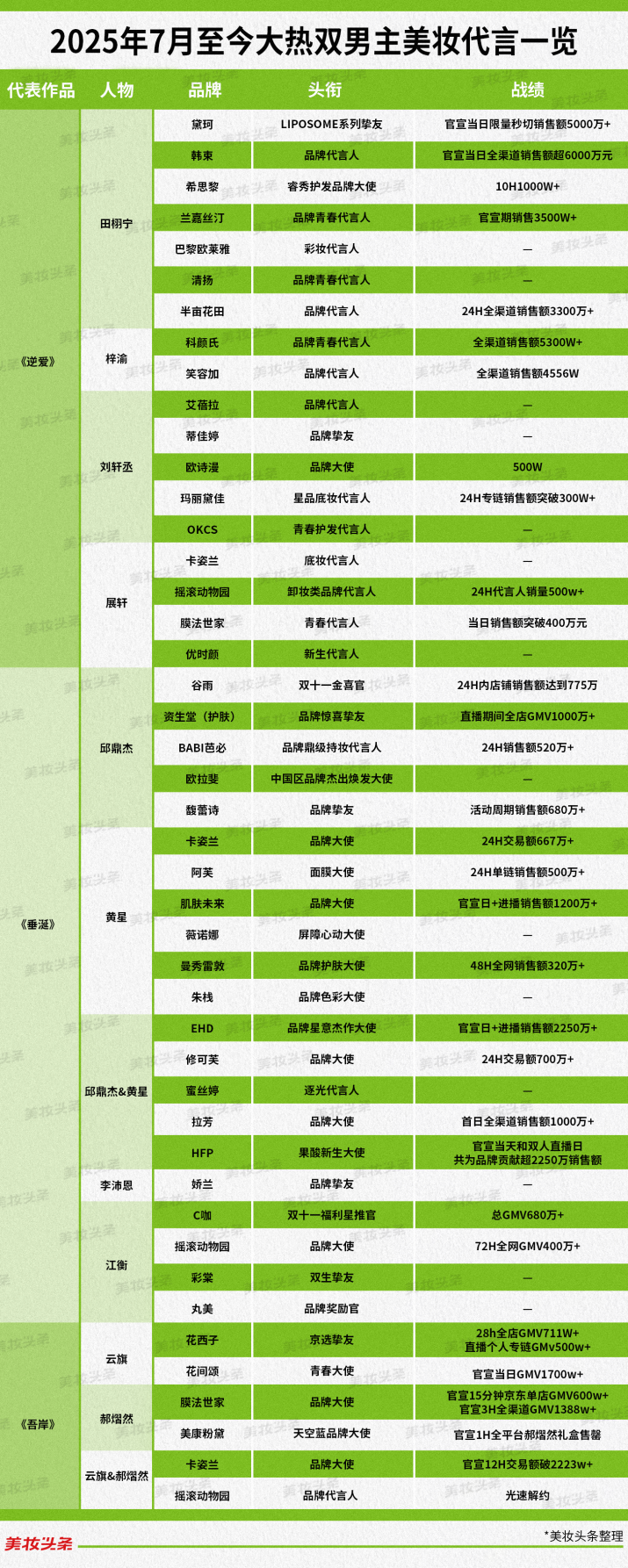相比主流明星动辄千万的代言费用,双男主的代言成本相对可控,却能撬动千万级销售额,这恰好满足了当下国货美妆品牌想要低成本获客、高即时转化、快速冲销量的核心诉求,这种高性价比选择进一步刺激了品牌的押注热情。