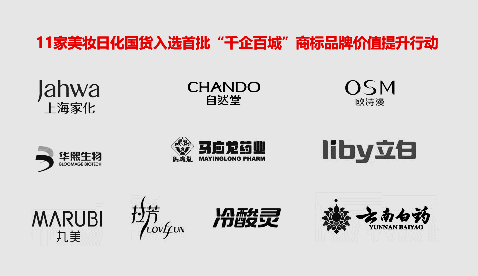 近日,国家知识产权局公布:上海家化、自然堂、华熙等11家美妆日化国货入选首批“千企百城”商标品牌价值提升行动名单。