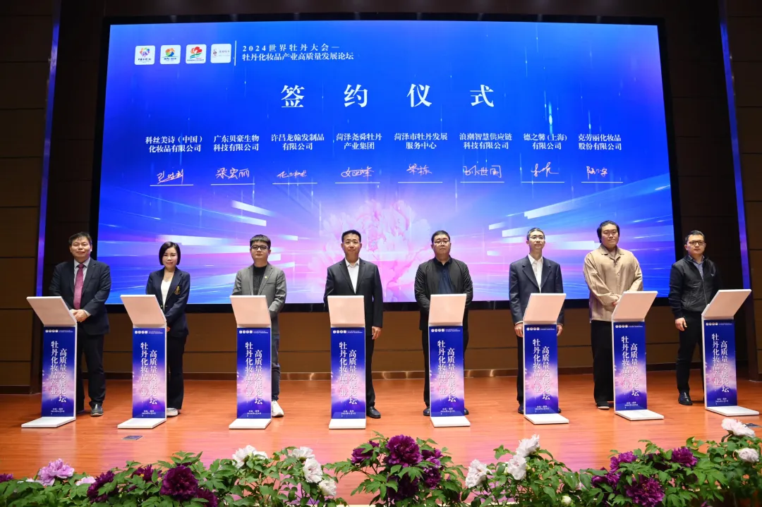 此外,菏泽市水务集团党委副书记姬广峰代表菏泽尧舜牡丹产业集团分别与菏泽市牡丹发展服务中心、浪潮智慧供应链科技有限公司、科丝美诗(中国)化妆品有限公司、广东贝豪生物科技有限公司、许昌龙翰发制品有限公司、德之馨 (上海) 有限公司、克劳丽化妆品股份有限公司签署合作协议,携手打造多领域、全方位的牡丹综合利用之路,奋力开创牡丹美妆产业高质量发展新局面。