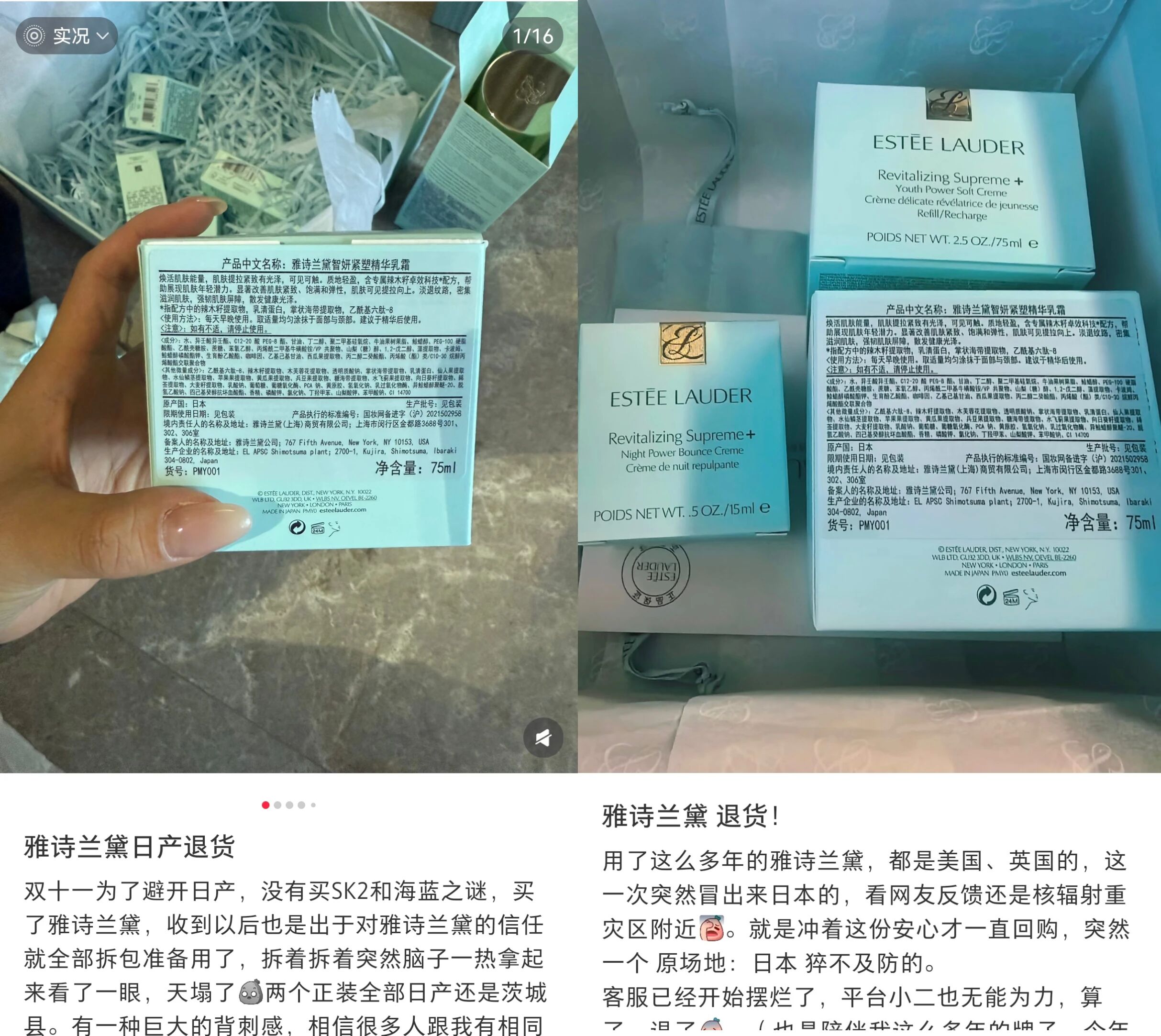 “天塌了,雅诗兰黛原产地来自日本核辐射区附近,还不给退货。”