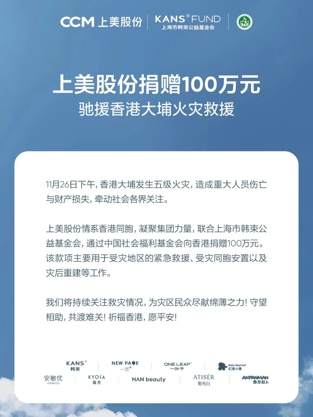 火灾发生后,美妆行业的援助行动在第一时间全面启动。各大企业通过各自的公益渠道迅速响应,纷纷向香港灾区伸出援手,展现出行业的速度与温度。