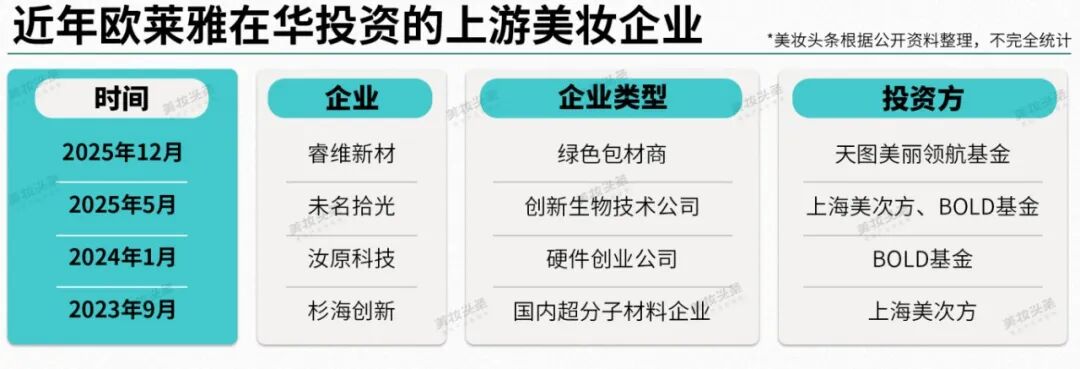 今年5月,欧莱雅投资了专注于AI生物合成技术的未名拾光;不久前,又首次投资中国包材企业睿维新材,切入绿色“负碳”新材料赛道。