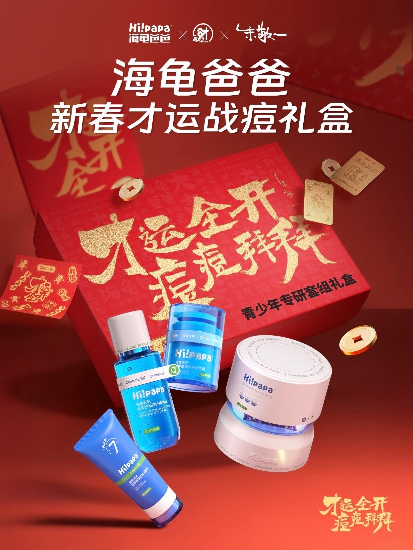 2026年新年,海龟爸爸交出了一份高分答卷。品牌突破传统节日营销框架,精准切入青少年期末至春节的真实生活场景,发起「才运全开,痘痘拜拜」整合营销。这并非一次简单的促销活动,而是一场 “产品为本、文化为核、社交为用”的系统性沟通升维,成功将科学护肤理念,转化为可感知、可参与、可传播的文化仪式。
