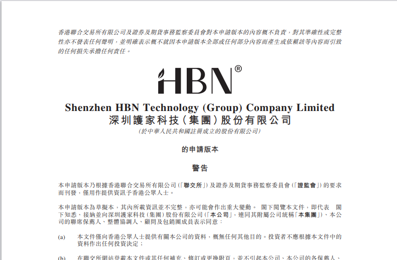 1月26日,国内功效护肤品牌HBN——深圳护家科技(集团)股份有限公司正式向香港联合交易所递交主板上市申请,冲刺“中国真功效护肤理念第一股”。