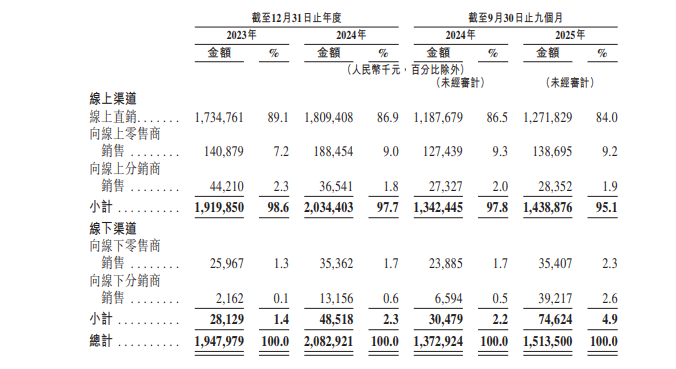 从收入看,线上依然是基本盘,但线下渠道收入从2023年的0.28亿元快速成长至2025年前九个月的0.75亿元,显露出其线下增长潜力正在加速释放。