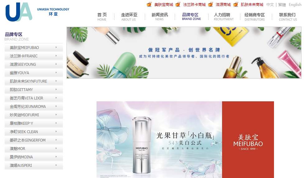 据公开资料显示,环亚是一家集研发、生产、销售、服务等为一体的综合性化妆品企业。产品涵盖护肤、洗护发、身体护理、精油等领域,覆盖日化专营店、商场超市、百货专柜、单品牌店、化妆品零售连锁店以及电子商务等营销网络。