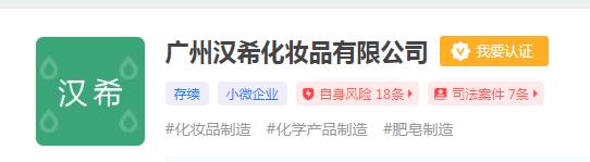 据企查查显示,广州汉希成立于2015年7月28日,公司经营范围包括化妆品制造、有机化学原料制造(监控化学品、危险化学品除外)等。