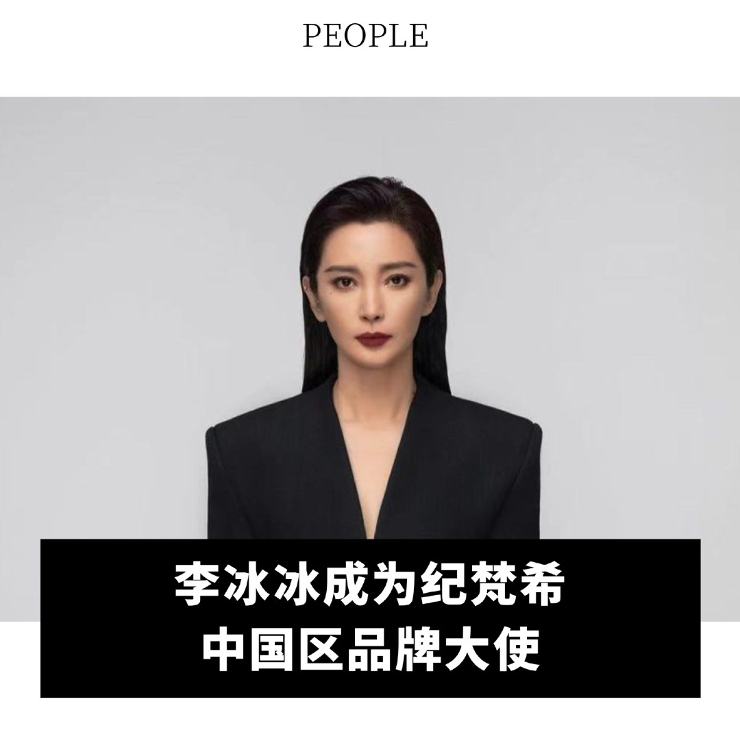 近期,LVMH 集团旗下奢侈品牌纪梵希正式宣布中国女演员李冰冰成为中国区品牌大使。李冰冰是纪梵希品牌的第三位中国代言人,对此,李冰冰表示:“纪梵希历史悠久,在我的印象中一直非常迷人。我很高兴能加入纪梵希大家庭,并期待未来与纪梵希有更多的合作。”李冰冰在中国社交媒体平台微博上拥有超过 4000 万粉丝。近年来,除了演艺工作,她一直关注环保事业,担任世界自然基金会“地球一小时”大使、联合国环境规划署亲善大使、上海世博会慈善大使。
