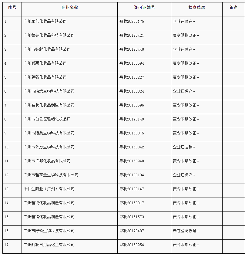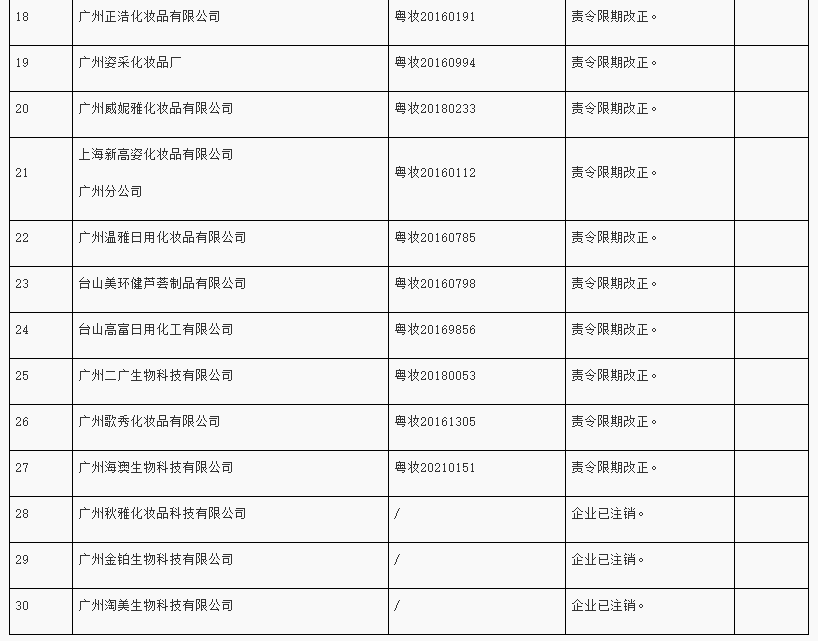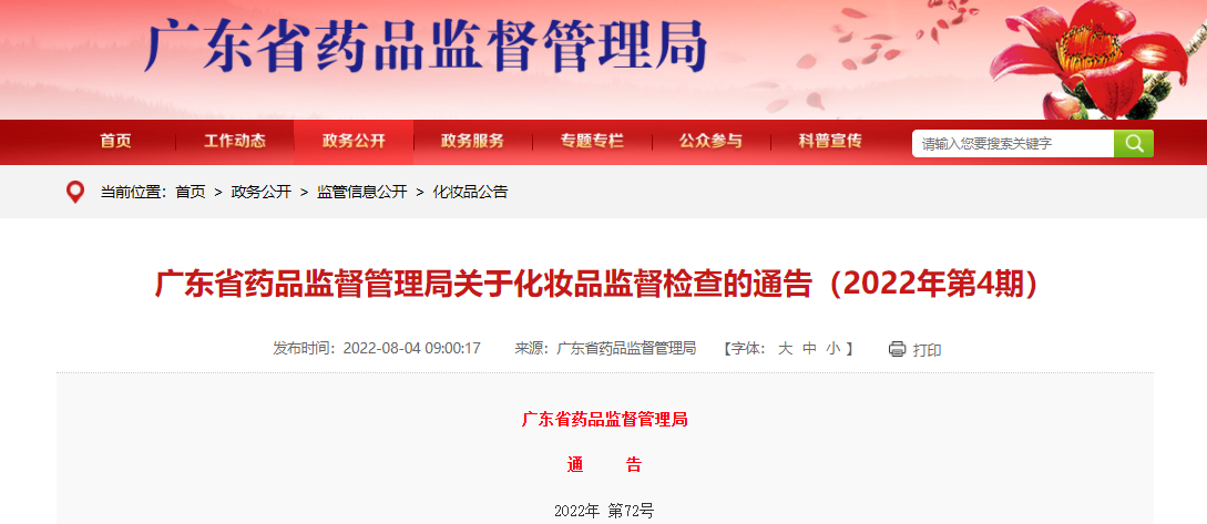 8月4日,广东省药品监督管理局发布了《关于化妆品监督检查的通告(2022年第4期)》,根据《化妆品监督管理条例》和《化妆品生产许可检查要点》等法规规章文件,广东省药品监督管理局近期对下列化妆品生产企业进行监督检查,现将检查情况通告如下。