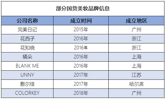 图:部分国货美妆品牌信息,来源:公开网络,锦缎研究院整理