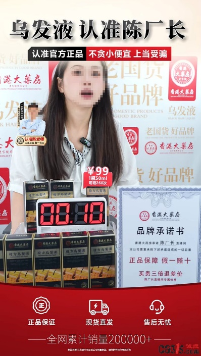 《中国消费者报》报道,一款名为“香港大药房复方乌发液”的小黑瓶产品凭借精心剪辑的剧本视频和话术,在直播平台迅速走红。该产品宣称“古方秘制”、“特添专利菌株”、“已帮助3亿+人”,营造出“神奇黑发”的效果。