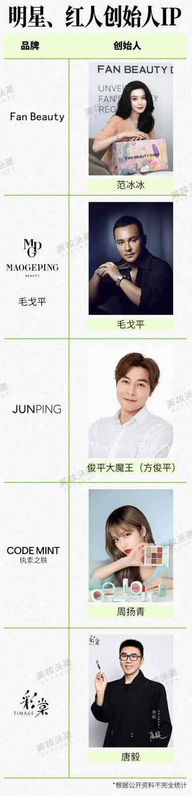 这类品牌创始人往往早已具备公众认知或垂直领域的权威地位。他们的个人故事、知名度或审美体系本身就成为品牌最强的“内容资产”。品牌诞生之初即享有信任红利,极大降低市场教育成本。例如,毛戈平的“换头级”化妆技术本身就是品牌最具说服力的广告。范冰冰借助自身强大的明星光环和社交媒体上庞大的粉丝基础,品牌一经推出便迅速在市场上掀起热潮。知名红人周扬青曾每天通过微博日记形式,向粉丝介绍彩妆品牌codemint纨素之肤背后的故事,吸引不少粉丝和消费者关注,还得到了化妆品代工厂巨头科丝美诗的投资。