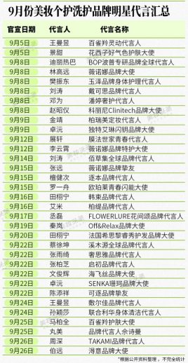 而此时,明星代言以新的姿态重回舞台中央。据美妆头条不完全统计,光是9月,美妆个护领域就官宣了30+明星代言人。