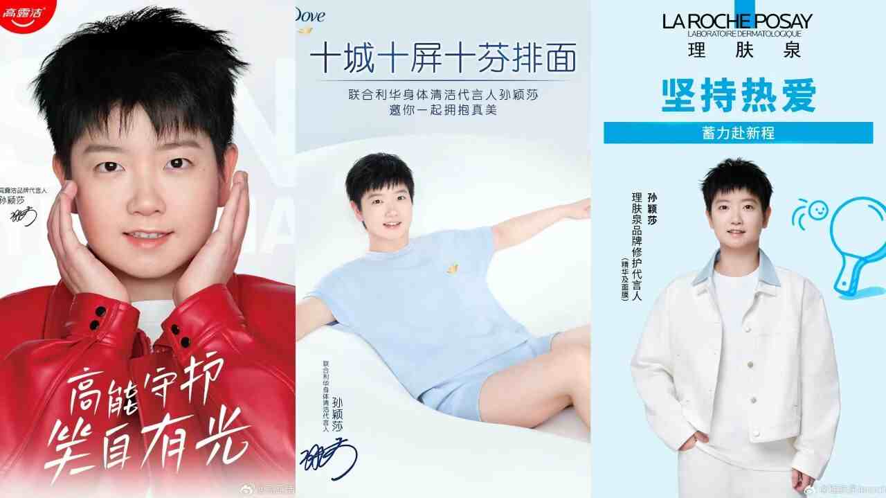 体育界的“顶流”孙颖莎,近一年来更是拿下了至少8个美妆个护品牌代言,分别是联合利华、OLAY、理肤泉、半亩花田、妮维雅、高露洁、梅森马吉拉香氛和全棉时代。