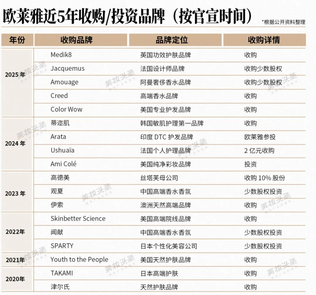 这一系列举措彰显了欧莱雅通过外部收购强化内部实力的长期战略,也体现了其对市场趋势的敏锐把握。