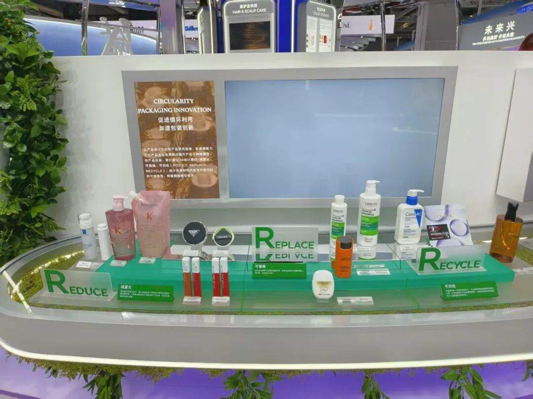 《美妆头条》注意到,在2025年第八届进博会上,欧莱雅在创新包装与环保、绿色材料展示方面确实表现突出,为美妆行业的可持续发展树立了标杆。根据欧莱雅现场工作人员介绍,其在中国市场的创新包装与环保、绿色材料技术,已推广至欧莱雅欧洲市场。
