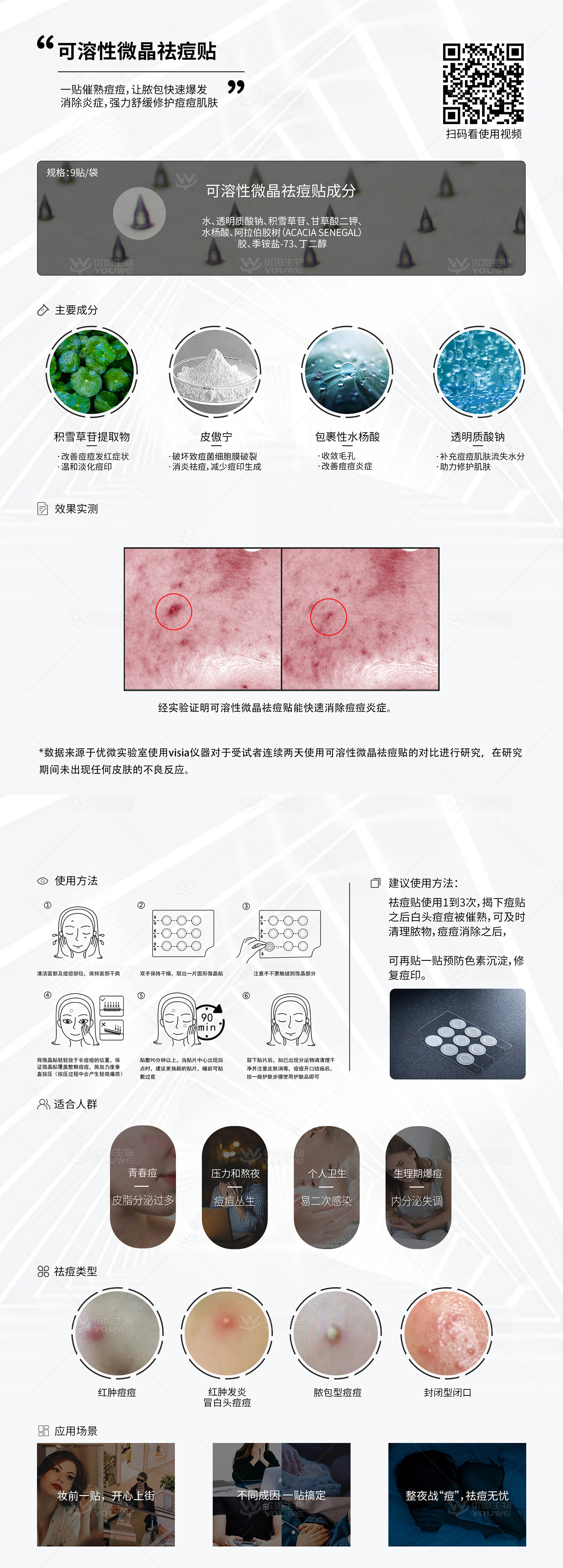 快速消除红肿,精准对抗痘痘,三大活性成分从源头杜绝痘痘产生,消炎抗菌修护肌肤,温和不伤皮
