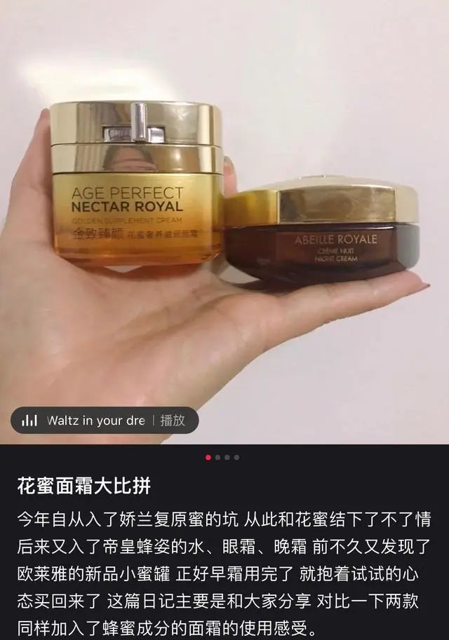 据悉,本案原告路威酩轩公司旗下品牌产品帝皇蜂姿50毫升晚霜官方售价为1490元,被告欧莱雅公司旗下品牌产品花蜜奢养50毫升晚霜官方售价为379元,两者单价相差千余元。此外,记者注意到,在小红书平台,有部分消费者将两款含有“蜂蜜”成分的产品进行比较。