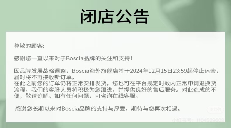 Boscia并未透漏品牌关停原因,不过外界猜测可能和业绩相关。