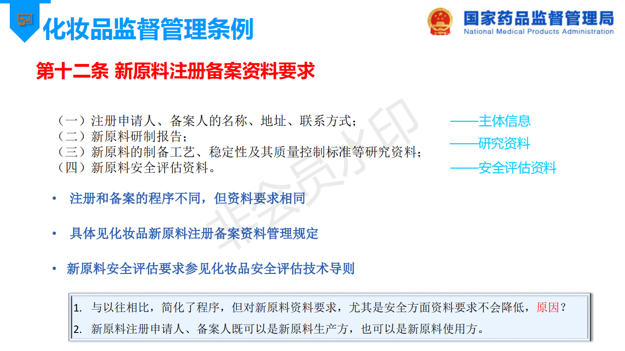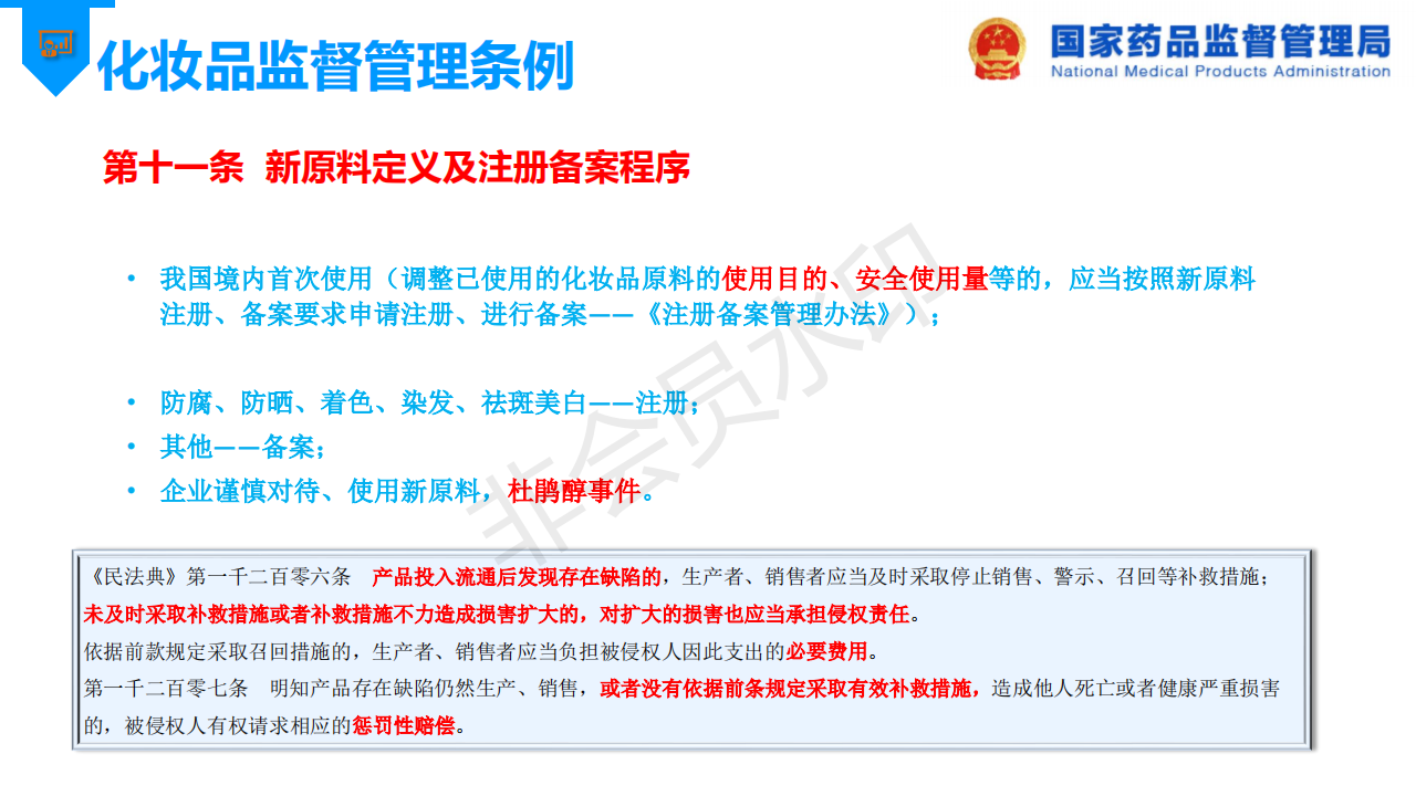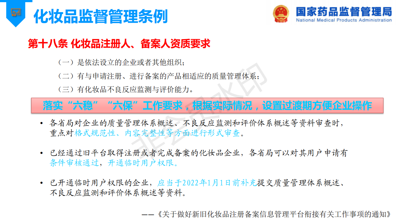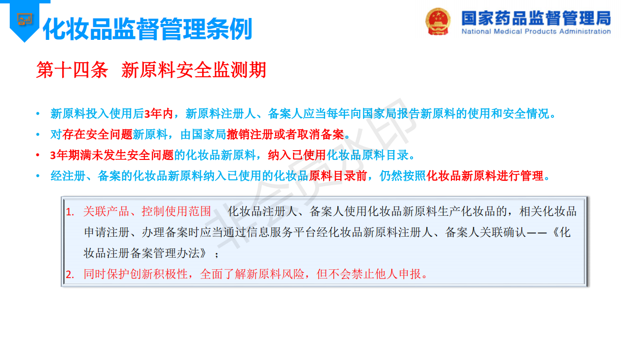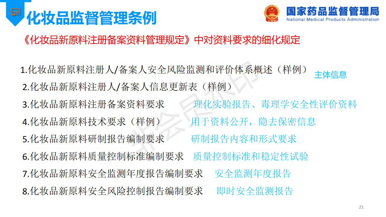 国家药监局先后发布了“关于发布《化妆品新原料注册备案资料管理规定》的公告”和“关于发布《化妆品注册备案资料管理规定》的公告”,以进一步规范和指导化妆品新原料、化妆品的注册与备案工作,为了更好推进化妆品注册备案的问题,国家药品监督管理局发布了《化妆品注册备案相关法规介绍》。