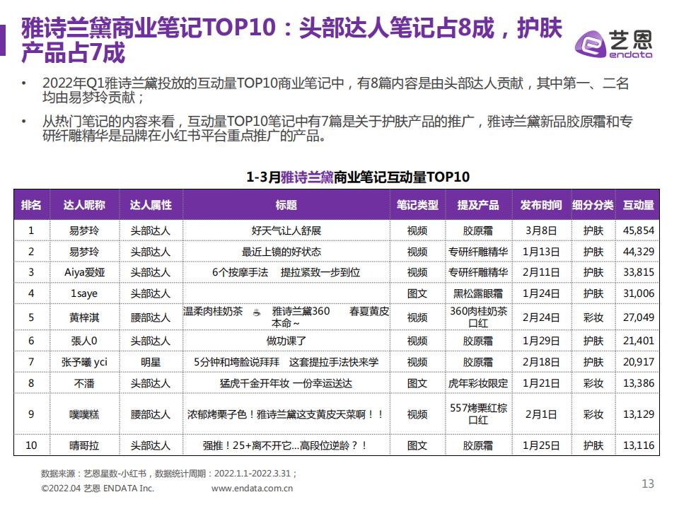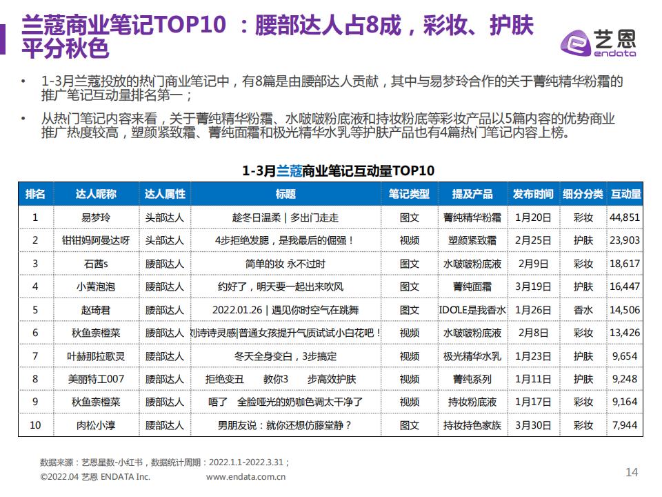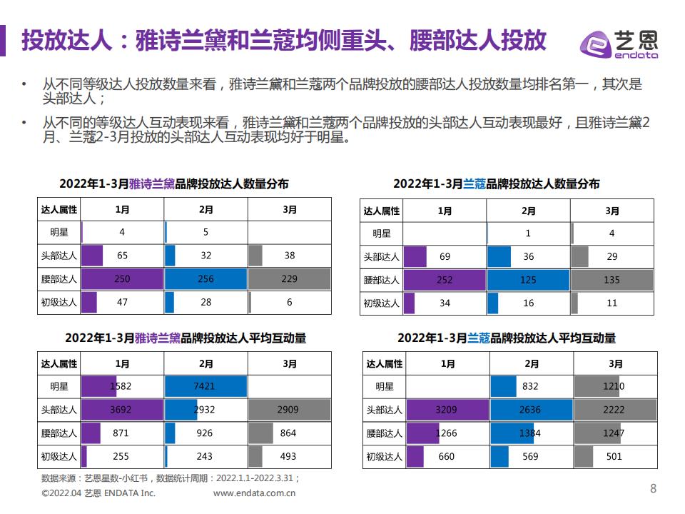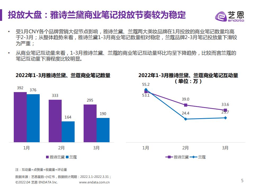 2022Q1雅诗兰黛&兰蔻小红书投放效果对比分析