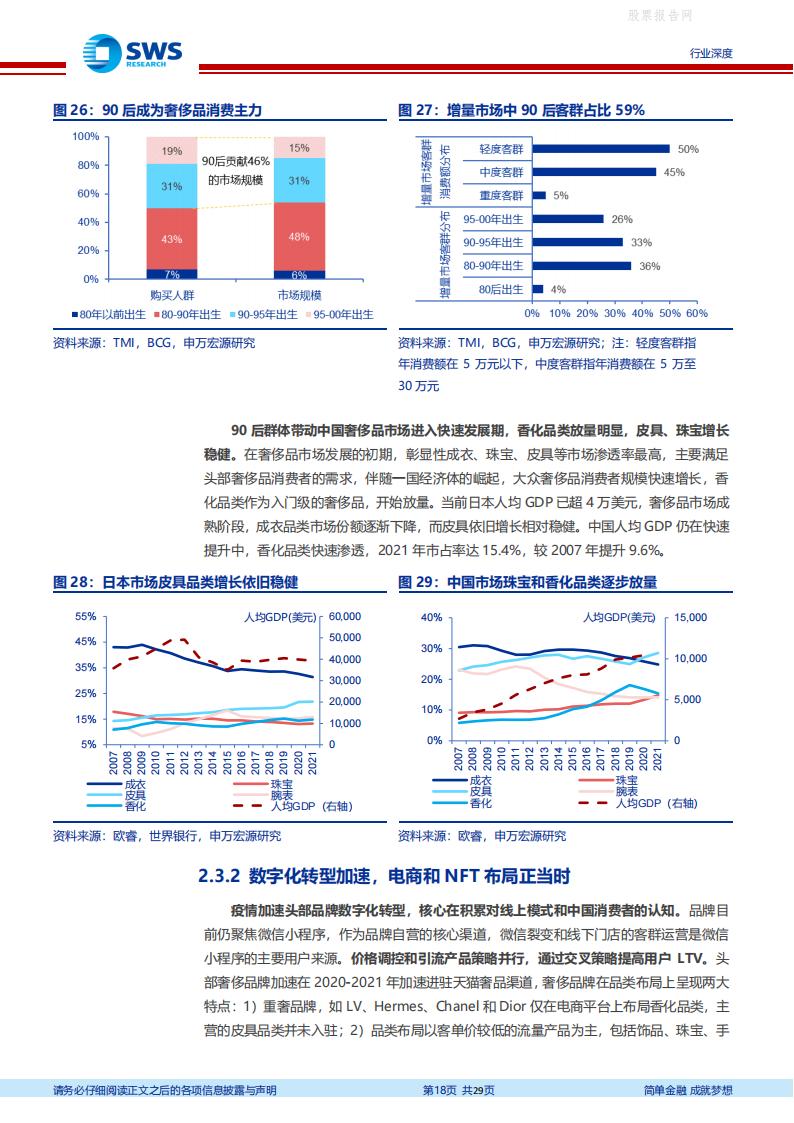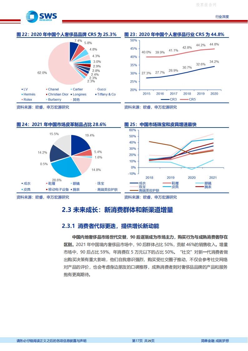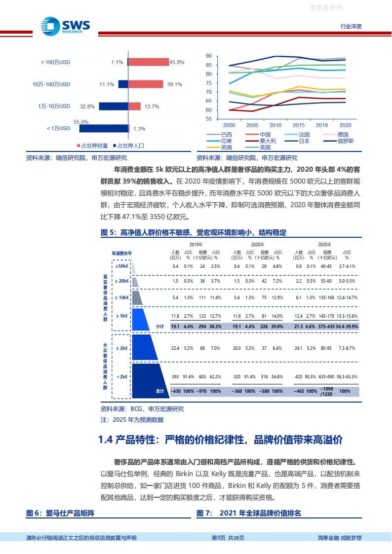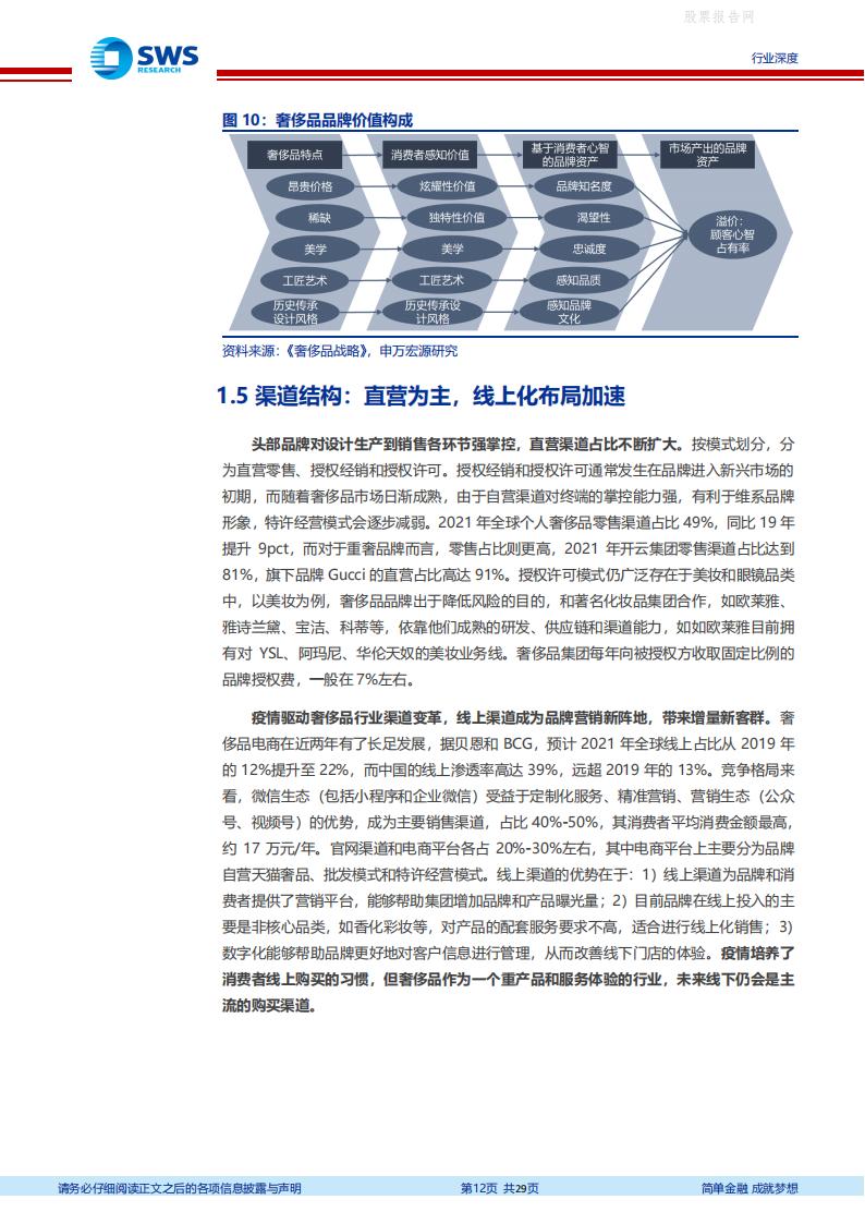 全球奢侈品市场高基数、稳增长、韧性足,亚太市场成为增长主引擎,中国市场逆势增长。2021 年全球奢侈品市场达1.13 万亿美元,个人奢侈品市场占比31%。亚太地区引领全球个人奢侈品市场“V 型”复苏,2021 年市场规模达3496 亿美元,恢复至2019 年的96%。