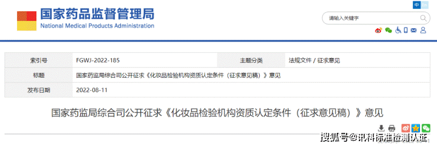 去年8月,为落实《化妆品监督管理条例》(国务院令第727号)有关规定,规范化妆品检验检测机构资质认定工作,国家药监局会同市场监管总局制定了《化妆品检验机构资质认定条件(征求意见稿)》。