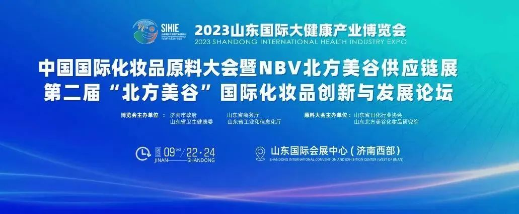因此,9月22日-24日,在2023山东国际大健康产业博览会大平台的支持下,由山东省日化行业协会、山东北方美谷化妆品研究院联合主办的2023山东国际大健康产业博览会·中国国际化妆品原料大会暨NBV北方美谷供应链展&第二届“北方美谷”国际化妆品创新与发展论坛将在山东国际会展中心2号馆举办。