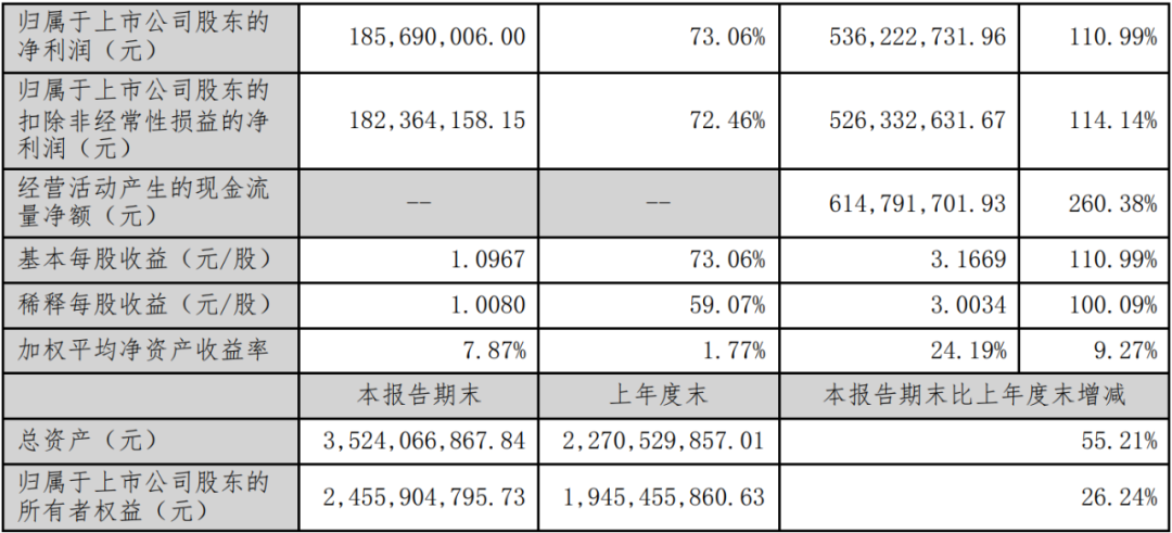 归属于上市公司股东的净利润为5.36亿元,同比增长110.99%。