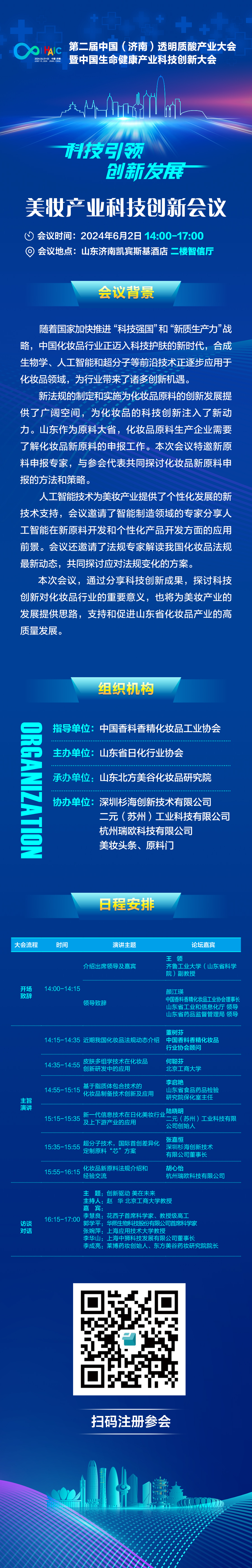 本次会议,通过分享科技创新成果,探讨科技创新对化妆品行业的重要意义,也将为美妆产业的发展提供思路,支持和促进山东省化妆品产业的高质量发展。